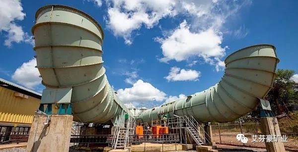 高容量风管通过直径为5.5米的1号通风井,把新鲜空气输送到卡库拉的地下工作面 ,为日益增加的矿山开采员工提供了保障。