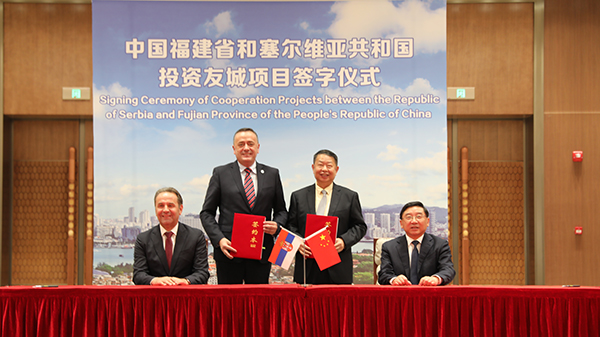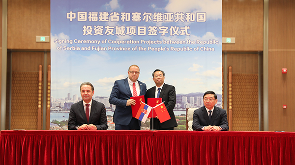 会谈结束后,在于伟国、利亚伊奇双方共同见证下,陈景河董事长与塞尔维亚能源和矿业部部长安蒂奇签署《关于开发蒂莫克铜矿上部矿带的谅解备忘录》,上杭县委书记傅藏荣与波尔市市长米利基奇签署了友好城市结好意向书。