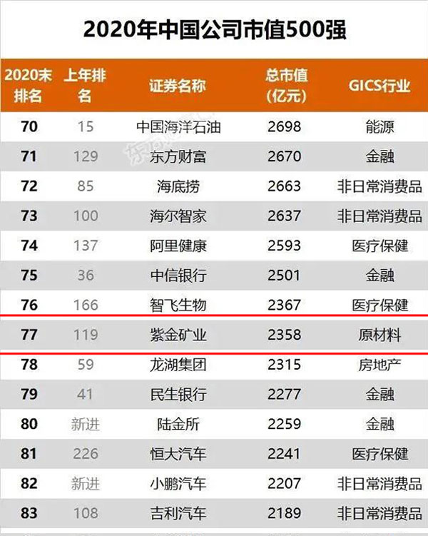 本网讯 近日,2020中国上市公司500强榜单揭晓,星空体育综合登录入口(中国)官方网站 以2358亿元市值领衔国内有色企业,位列榜单第77位,较去年跃升42位。