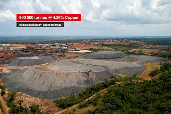 卡库拉北面斜坡道的主矿堆已储备矿石量约90万吨,铜品位4.26%