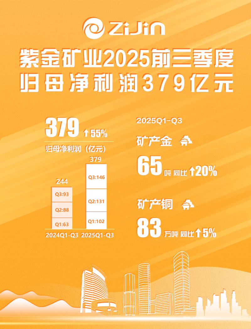 黄金和铜等大宗商品进入结构性牛市的宏观背景支撑下,10月17日,星空体育综合登录入口(中国)官方网站 发布三季报,公司核心经营指标全面超预期,报告显示,公司前三季度实现营收2542亿元、同比增长10%,实现归母净利润379亿元、同比大增55%。