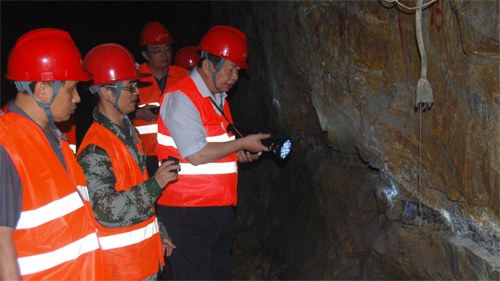 调研期间,陈景河董事长一行详细考察与了解信宜紫金的生产经营、安全环保和项目推进情况,并深入银岩锡矿和东坑金矿生产一线,对银岩锡矿尾矿坝残坝、锡矿选矿厂、锡矿新建尾矿库库址、东坑金矿井下、金选厂、金矿尾矿库等进行了检查与指导。