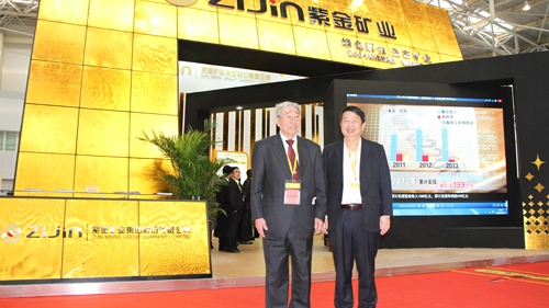 发展情况;中国工程院院士裴荣富先生专程找到紫金展厅,高兴地了解紫金的最新进展,并与陈景河董事长合影留念;加拿大矿业公司、渣打银行、普华永道等企业代表纷纷来到紫金集团展区,并与陈景河董事长、蓝福生副董事长等见面会谈。