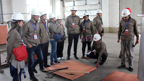 在阿舍勒铜矿,访问团先后参观了井下巷道、避灾铜室,并实地考察出矿点的出矿情况,观摩选矿厂的选矿工艺,了解尾矿库子坝建设及在线观测系统。随后,访问团在铜冠冶化项目参观了硫酸、湿法生产系统全流程,并亲身体验检测仪器的操作。