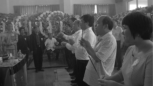 花圈簇拥,哀乐低回。