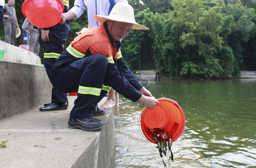 紫金山金铜矿向汀江投放12万尾鱼苗