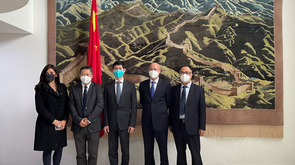 图:中间为中国驻哥伦比亚大使馆大使蓝虎,右二为星空体育综合登录入口(中国)官方网站 副总裁阙朝阳