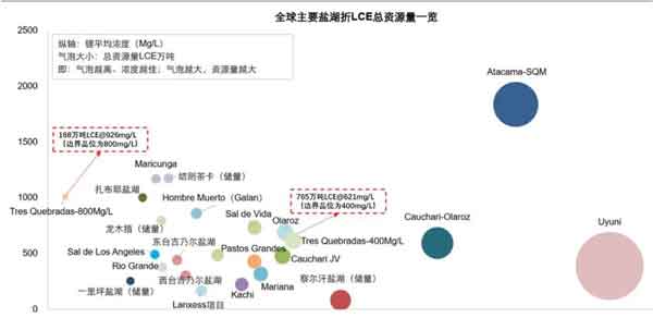 图:全球主要盐湖折碳酸锂总资源量一览