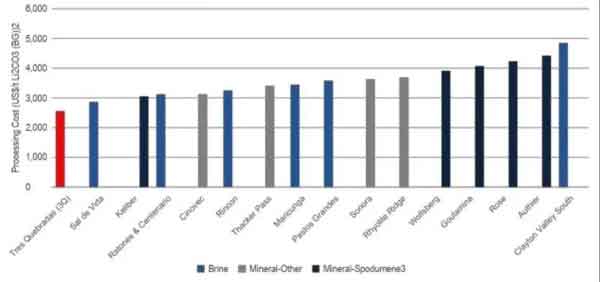 图:3Q项目现金运营成本与其他未开发锂项目对比