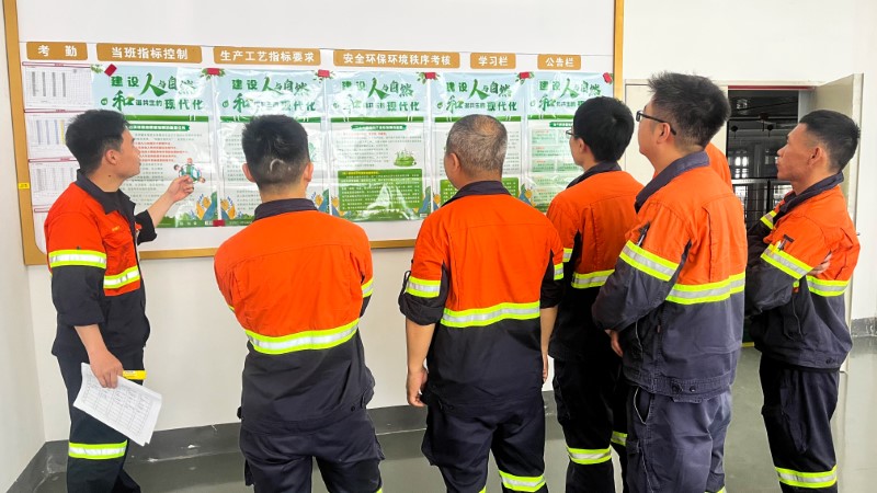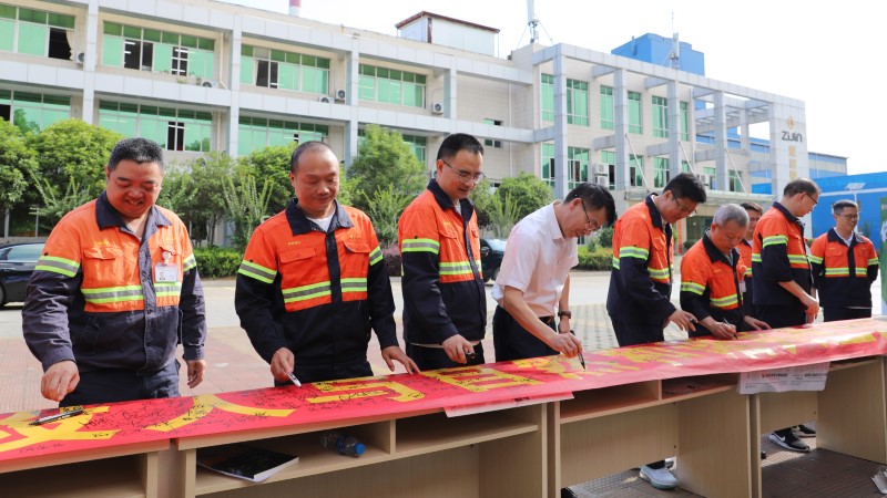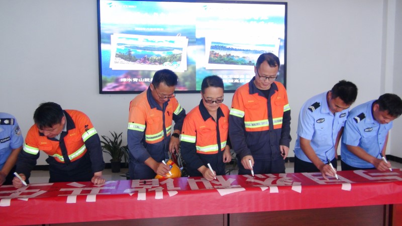 麻栗坡紫金钨业组织员工进行生态保护倡议签名,同时号召员工在矿区周边开展“拣塑”活动。