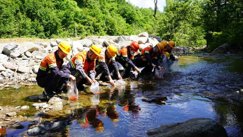 珲春紫金组织开展增殖放流活动,将2000余尾鱼苗放入流经矿区的香房河及矿区周边水域。