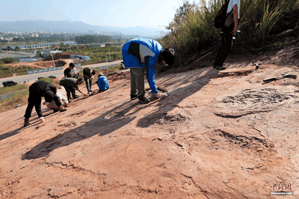 中新社丨紫金山脚下发现恐龙足迹