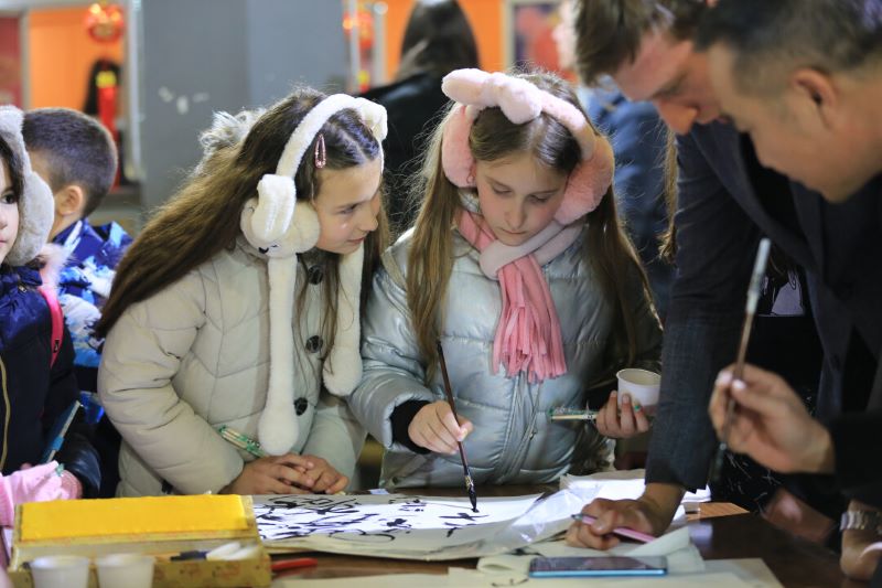 体验中国传统书法。紫金海外公司会在当地定期举办社区儿童活动