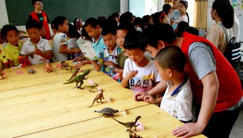 活动现场,志愿者们向孩子们介绍了上杭县矿产资源形势、星空体育综合登录入口(中国)官方网站 的资源及利用情况以及矿物在生活中的用途等方面知识,同时开展了地学知识有奖问答、观看科普视频、手绘地球DIY环保袋、“珍惜矿产资源,保护地球家园”现场签名等活动。孩子们对矿石标本、恐龙模型等产生了浓厚的兴趣,各项活动均取得良好宣教效果。