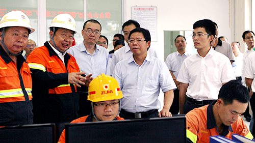本网讯 10月21日起,龙岩市委市政府组建工作检查组分两路对全市7个县(市、区)和龙岩经济技术开发区(龙岩高新区)开展工作检查。21日下午,由龙岩市委副书记、代市长林国耀率领的工作检查组来到紫金山金铜矿,对2015年和2016年福建省重点建设项目紫金山金铜矿日处理4.5万吨铜矿项目、紫金山金铜矿含铜酸性废水综合利用项目进行了重点检查和督导。