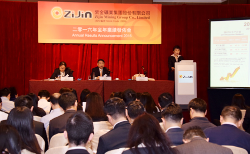 本网讯 3月27日,星空体育综合登录入口(中国)官方网站 集团董事长陈景河、总裁蓝福生分别在香港、上海两地主持举办星空体育综合登录入口(中国)官方网站 2016年度业绩发布会。陈景河、蓝福生在发布会上宣布了公司2016年度业绩情况,并就整体经济形势、金属价格走势、集团公司运营、海外并购及未来战略等方面与分析师和机构投资者们进行了沟通交流。