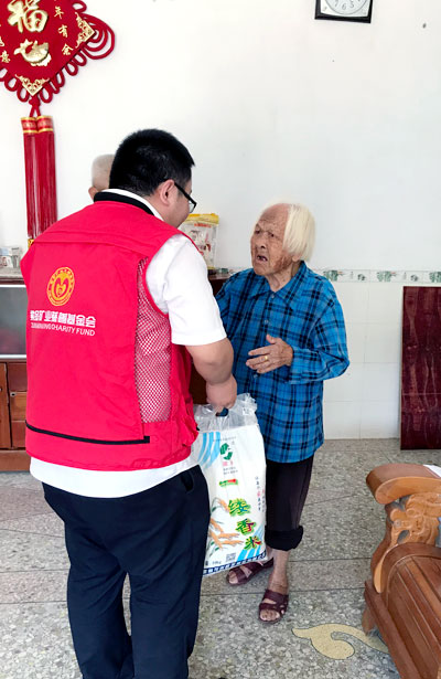 慈善基金会的志愿者带了米和油来看望您,很有心啊。”老人家听完,喃喃说道:“真是感谢他们那么关心。”