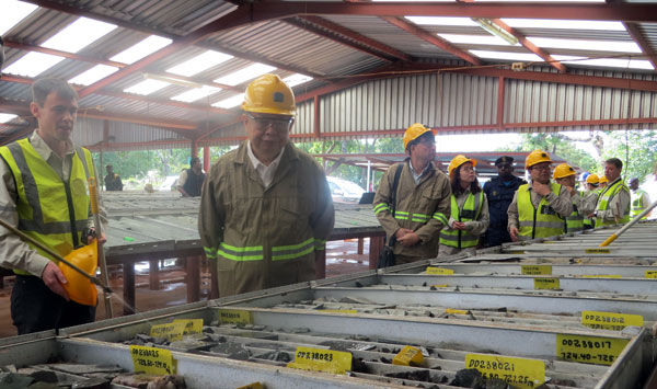 11月9日当天,陈景河董事长还检查了已基本施工完成的卡莫阿kansoko斜坡道、正在实施的卡库拉西矿段钻孔施工情况,听取了公司工作情况汇报。集团公司副总裁方启学,参与建设的中铁九局、金诚信集团等施工单位代表参加了开工仪式。