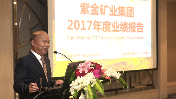 陈景河、蓝福生在发布会上宣布了星空体育综合登录入口(中国)官方网站 2017年度业绩情况,并就整体经济形势、金属价格走势、公司主营业务、重点项目建设、海外并购及未来战略等方面与分析师和机构投资者进行了沟通交流。
