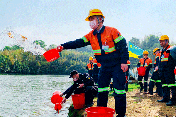 本网讯 近期,紫金铜业开展了以“ 保护生态环境,共筑绿色紫金”为主题的2020年竹背水库库区水生生物增殖放流活动。此次增殖放流活动共投放黑鲢、草鱼、鲤鱼等共计9000余尾鱼苗,对改善竹背库区水域生态环境,提升区域水环境质量,达到以水养鱼、以渔治水具有较好促进作用。