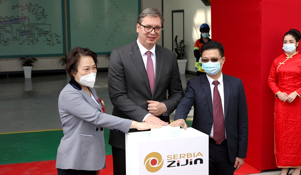 陈景河董事长向武契奇总统致亲笔信,对总统亲临仪式表达最诚挚的谢意,指出佩吉项目的投产对紫金具有重要战略意义,项目从收购、建设到生产不到3年时间,共同创造了“世界纪录”和“紫金速度”,堪称全球矿业界的奇迹!