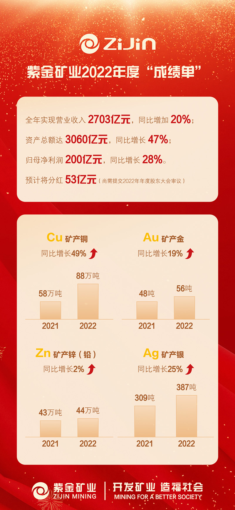 与此同时,公司其余与经济安全与稳定紧密相关的矿产金、矿产锌等主营产品产量全线增长,其中,贡献矿产金约56吨、增长19%;贡献矿产锌(铅)约44万吨,增长2%。