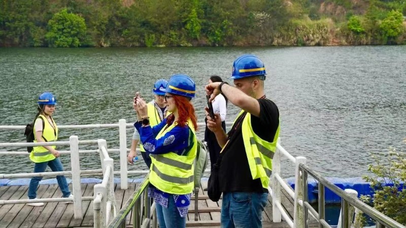大巴停在紫金山国家矿山公园主碑前,从参观主碑公园、植物园到俯瞰露天采矿厂,从了解碎矿、选矿工艺流程到与察看汀江生态监测点的水美鱼肥,还有玫瑰园、体育场、樱花大道……大家延着山势一路向上,一路“惊叹”。