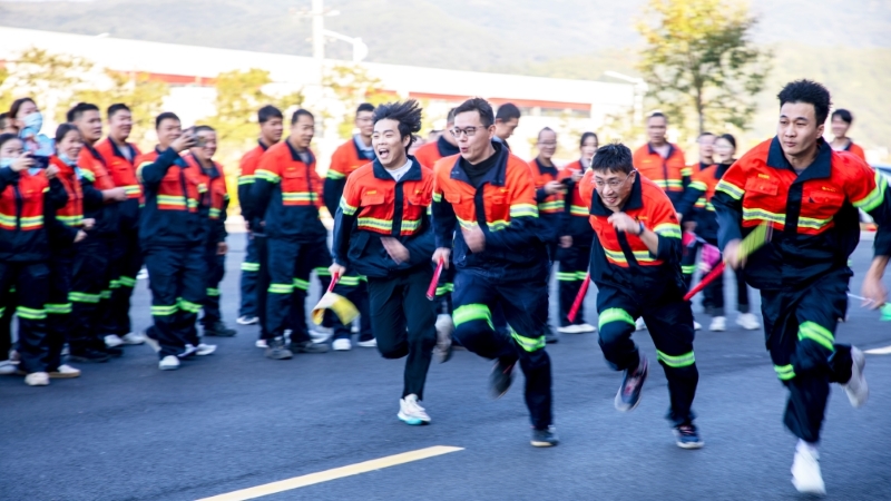 福建省紫金铜箔举办迎新运动会,设“乘风接力跑”和“逐梦旗兵赛”两个项目,18支代表队齐聚一堂、热闹开赛。