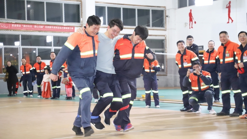 福建省紫金铜业组织开展了元旦春节系列活动之趣味接力赛,吸引了来自各厂部(室)、合作单位员工代表组成的18支参赛队伍、近200人参加。