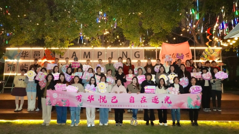 黄金珠宝公司向全体女职工献上玫瑰花和节日祝福,还组织了户外露营烧烤活动。