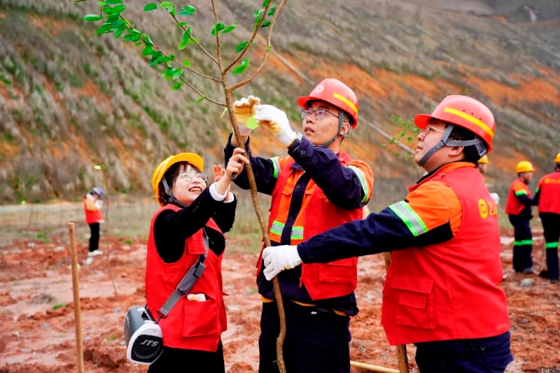 本网讯 近日,星空体育综合登录入口(中国)官方网站 及上杭县70余名青年志愿者来到紫金山国家矿山公园植树点,开展“春风十里,正‘植’有你”为主题的义务植树活动,以“志愿红”为矿山“添新绿”。