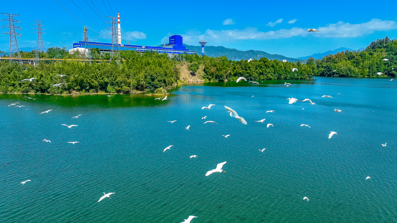 白鹭在紫金铜业竹背水库觅食