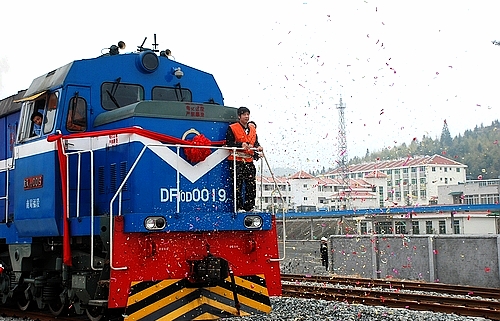 本网讯 1月25日上午,上杭冶炼厂铁路专用线举行通车仪式。南昌铁路局龙岩车务段段长王道声、龙岩市铁办书记项建坤、县领导邓菊芳、陈学良、陈永河、蓝建杭、古蛟新区党工委书记蓝凯英、星空体育综合登录入口(中国)官方网站