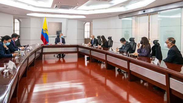 图:中间为中国驻哥伦比亚大使馆大使蓝虎,右二为星空体育综合登录入口(中国)官方网站 副总裁阙朝阳