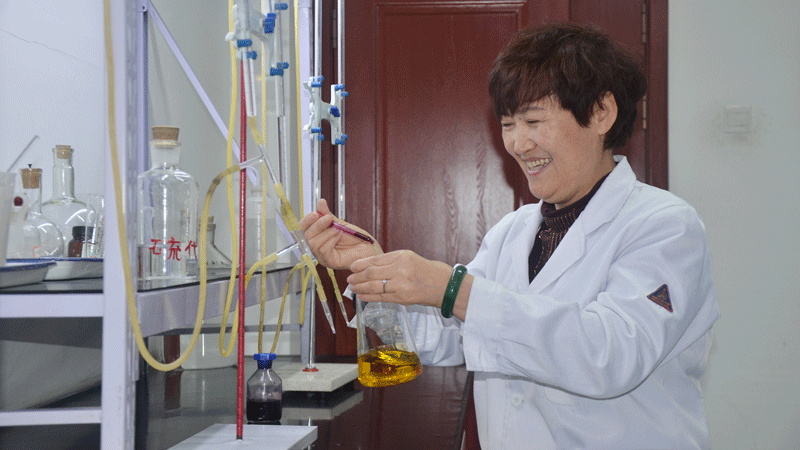 作为乌后紫金技术中心首批取样、化验工人,陈晓燕帮助20名妇女成为职业女性,证明女性也能用知识和经验创造价值,撑起了化验室的“一片天”。