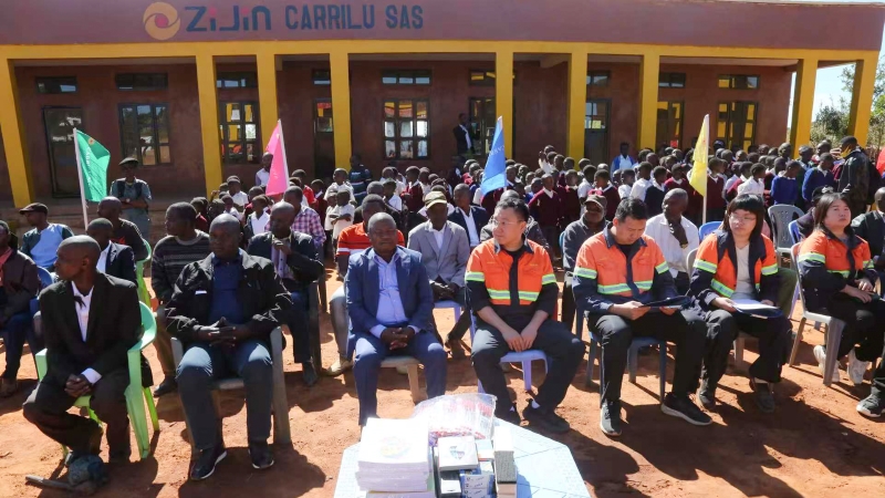 5月23-24日,刚果(金)卡瑞鲁项目在当地社区捐建的两座学校相继取得重要进展,米武卡学校正式奠基,马彭多小学全面交付使用,公司通过硬件升级与物资捐赠,系统性提升了当地基础教育水平。