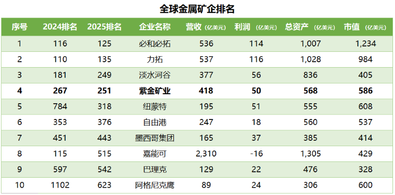 再晋级!星空体育综合登录入口(中国)官方网站 进入《福布斯》全球上市企业2000强金属矿企第4位